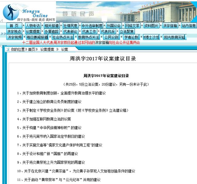 此前,周洪宇作为全国人大代表呼吁和推动多年的九年义务教育学杂费免费、教科书免费、建立全国中小学校车安全体系、建立国家教师荣誉制度等建议,也都先后写入中央文件,产生实际作用,推动教育改革发展。