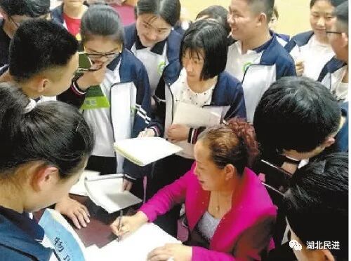 全国人大代表许富华(前排左二)记录学生们的意见建议