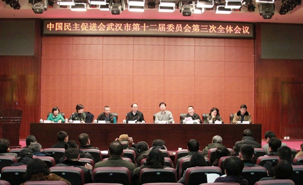 孟晖在会上传达学习民进全国十二代会精神,并代表民进武汉市第十二届常务委员会作工作报告。中共武汉市委统战部副部长李林平在讲话中指出,民进武汉市委会把理论学习作为首要政治任务,组织发展新领域取得突破,建立健全参政议政机制,打造“四大平台”开展形式多样的社会服务活动,各项取得了优异成绩。希望市民进继续坚持深入贯彻落实党的十九大精神,用时不我待的精神,奋力拼搏赶超,为武汉市建设国家中心城市、打造世界亮点城市作出新贡献。